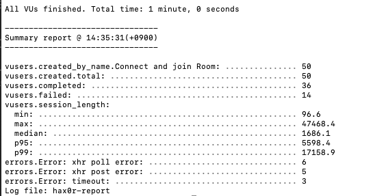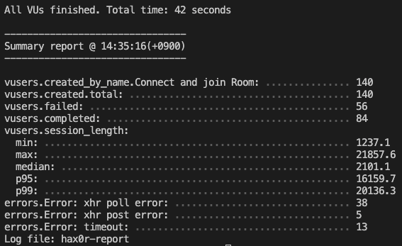 10초에 방 164개 약 1000명 10 duration 동안 전부 송신이 안되는거같음 터미널 2개