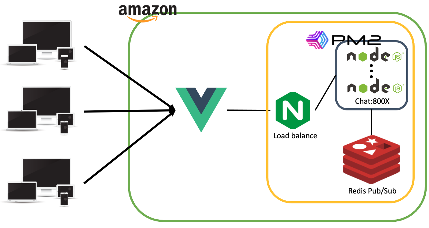 이제 WebServer(Vue), Nginx, WAS(ChatServer), Redis 세팅이 끝났다.
